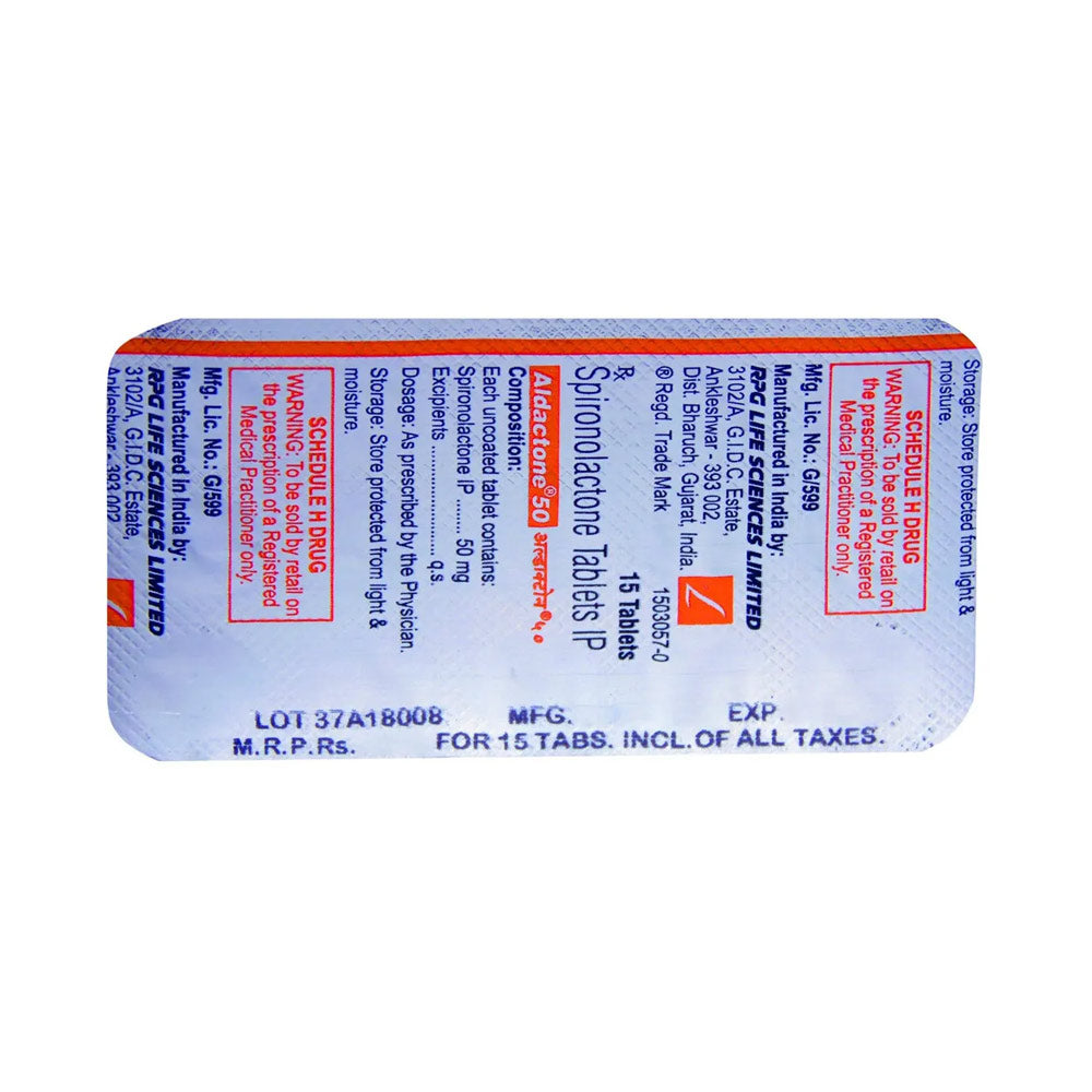 Aldactone 50 Tablet is a medicine known as a diuretic (water pill). It is mainly used in the treatment of heart failure and high blood pressure. It reduces the swelling (edema) caused by some other conditions. This medicine is also used to treat low potassium levels in the body (hypokalemia).