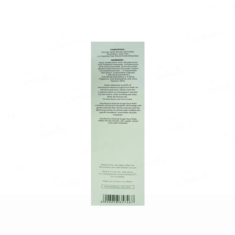 Aquahance Moisture Surge Face Wash is a hydrating and refreshing cleanser designed to gently remove dirt, oil, and impurities from the skin while delivering a surge of moisture. Infused with skin-loving ingredients like Hyaluronic Acid and Aloe Vera, this face wash not only cleanses but also hydrates the skin, leaving it soft, smooth, and supple. The mild formula is suitable for all skin types, including sensitive skin, and is ideal for daily use to maintain a healthy, radiant complexion. Aquahance Moisture Surge Face Wash helps to balance the skin's moisture levels, preventing dryness and irritation, and preparing your skin for the next steps in your skincare routine.