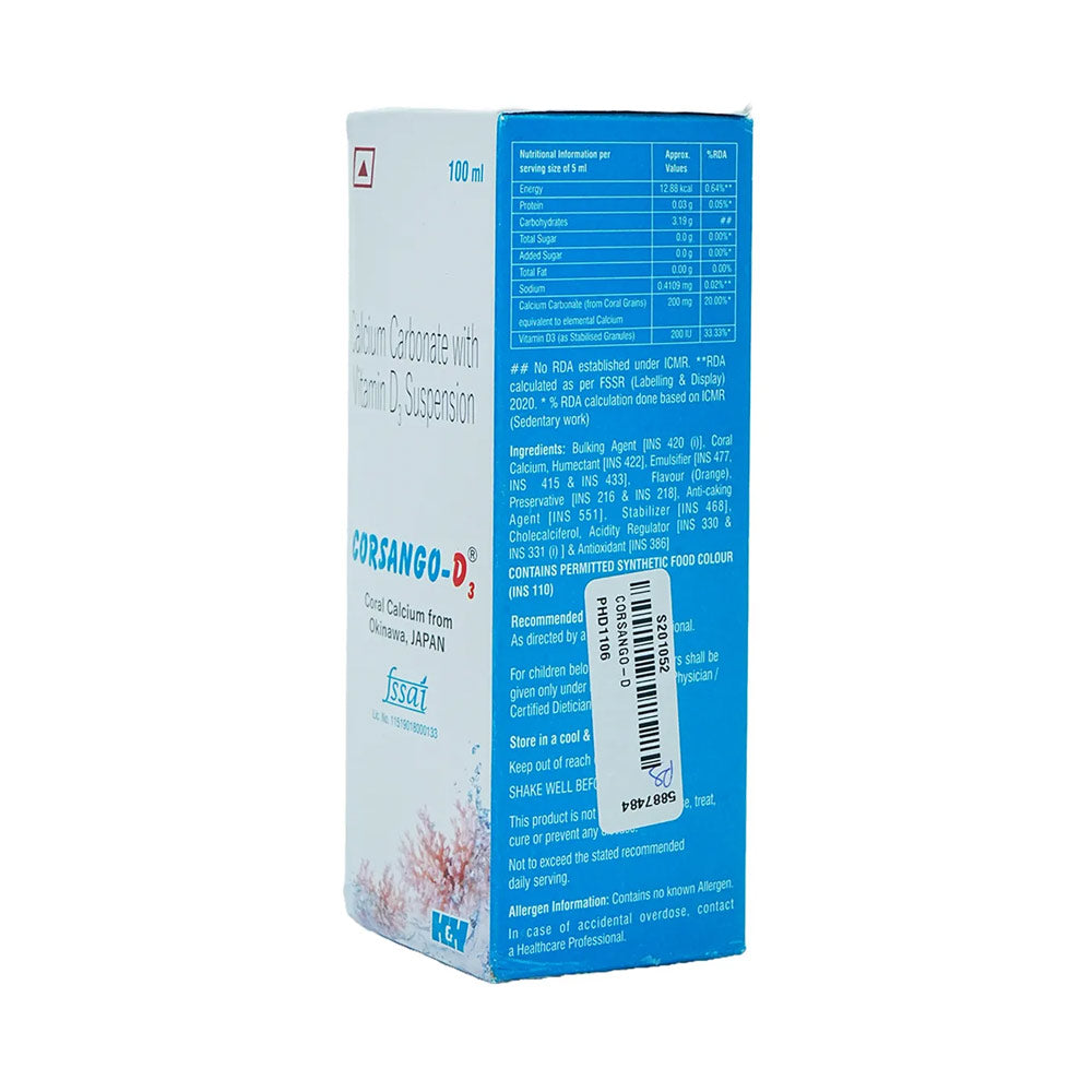 Corsango D3 Suspension is a vitamin supplement for the management of calcium and vitamin D deficiency states. It contains calcium carbonate and vitamin D3 as the active ingredients.