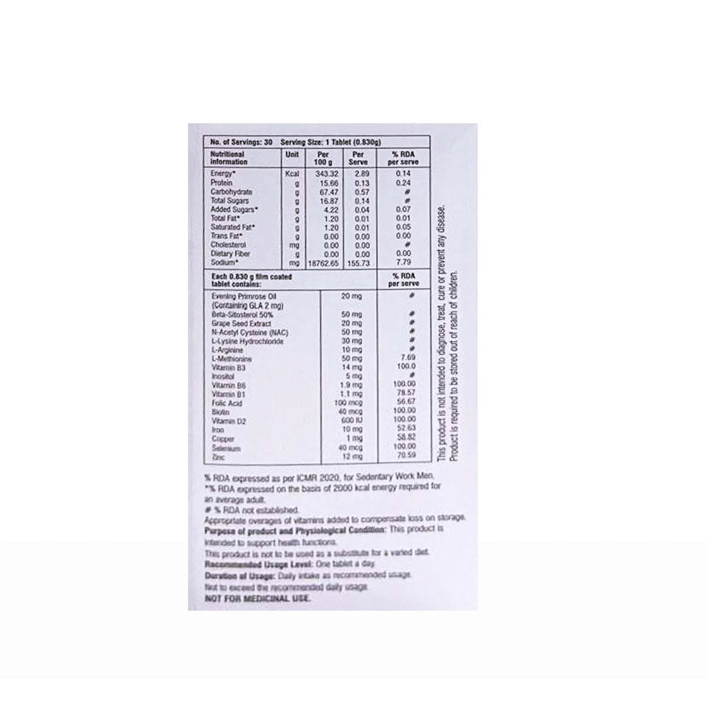 Cutihance Men Nutraceutical Tablet is a specialized supplement formulated with Evening Primrose Oil, Multivitamins, Multiminerals, Amino Acids, Beta-Sitosterol, and Grape Seed Extract. It supports overall health, addressing key concerns like energy, immunity, and skin nourishment. Enriched with antioxidants and essential nutrients, it helps combat oxidative stress and boosts vitality. This comprehensive formulation ensures men get their daily dose of essential nutrients, promoting physical and mental well-being while supporting a healthy lifestyle.