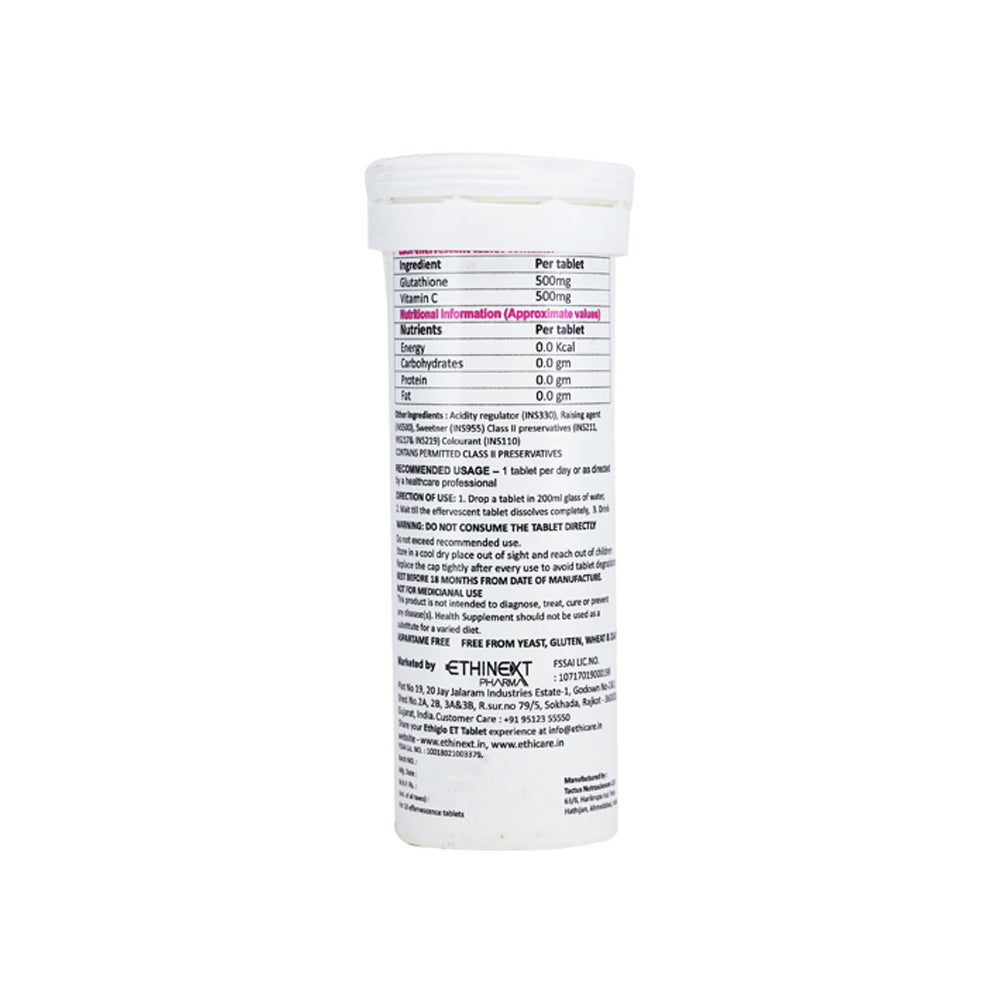 ETHIGLO ET Effervescent Tablet is a skin lightening agent that helps to nourish the skin and make it soft, smoother, glowing, and with a more even skin tone. It helps to reduce dark spots and post-acne scars to give glowing skin. It contains glutathione and vitamin C as the active ingredients, which help improve skin health.