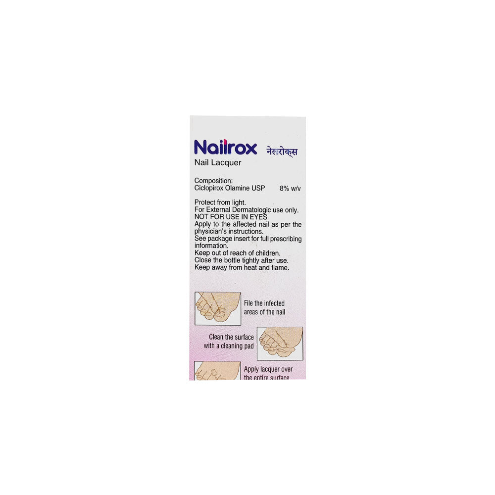NAILROX SOLUTION contains Ciclopirox, which belongs to the group of medicines called antifungals. It is used to manage mild to moderate fungal infections of fingernails and toenails without involvement of the nail lunula (the white half-moon of the nail) in patients with a normal immune response.