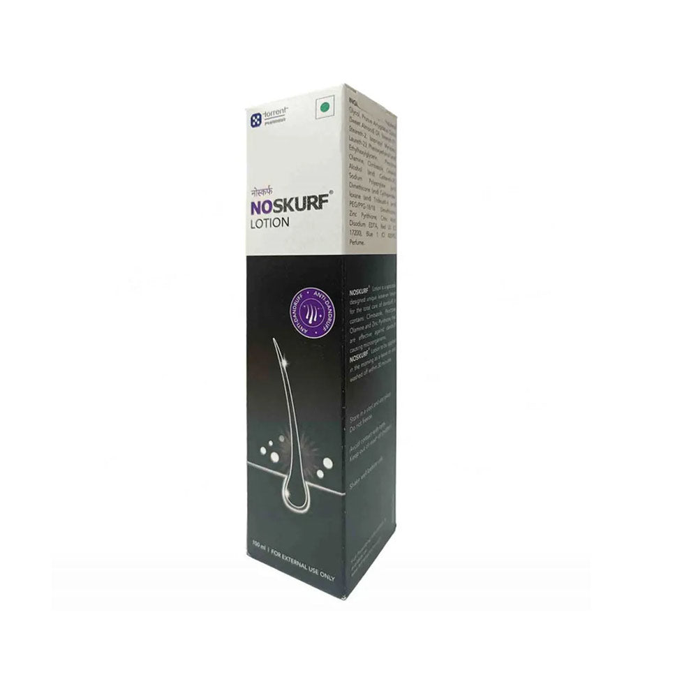 Noskurf lotion is a unique anti-dandruff lotion effective against microorganisms causing dandruff. The antifungal agents present in this lotion penetrate the infundibulum zone (upper portion of hair follicle above the entry of sebaceous duct) and addresses causative fungus. Thus, it relieves the scalp from dandruff and itching.