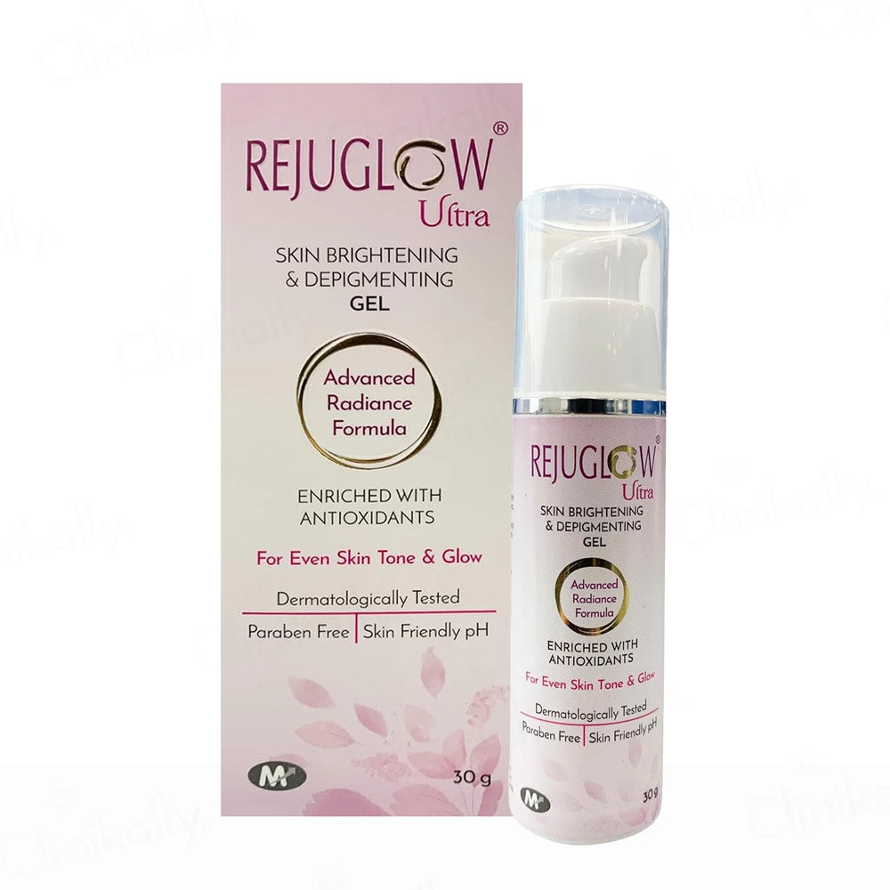 Rejuglow Ultra Skin Brightening Depigmenting Gel is a specialized skincare treatment designed to enhance skin brightness and reduce the appearance of pigmentation. Formulated with a potent blend of active ingredients, this gel effectively targets dark spots, hyperpigmentation, and uneven skin tone while promoting a radiant complexion. Its lightweight texture absorbs quickly, providing deep nourishment and hydration to the skin. Ideal for daily use, Rejuglow helps achieve a clearer, more luminous appearance.