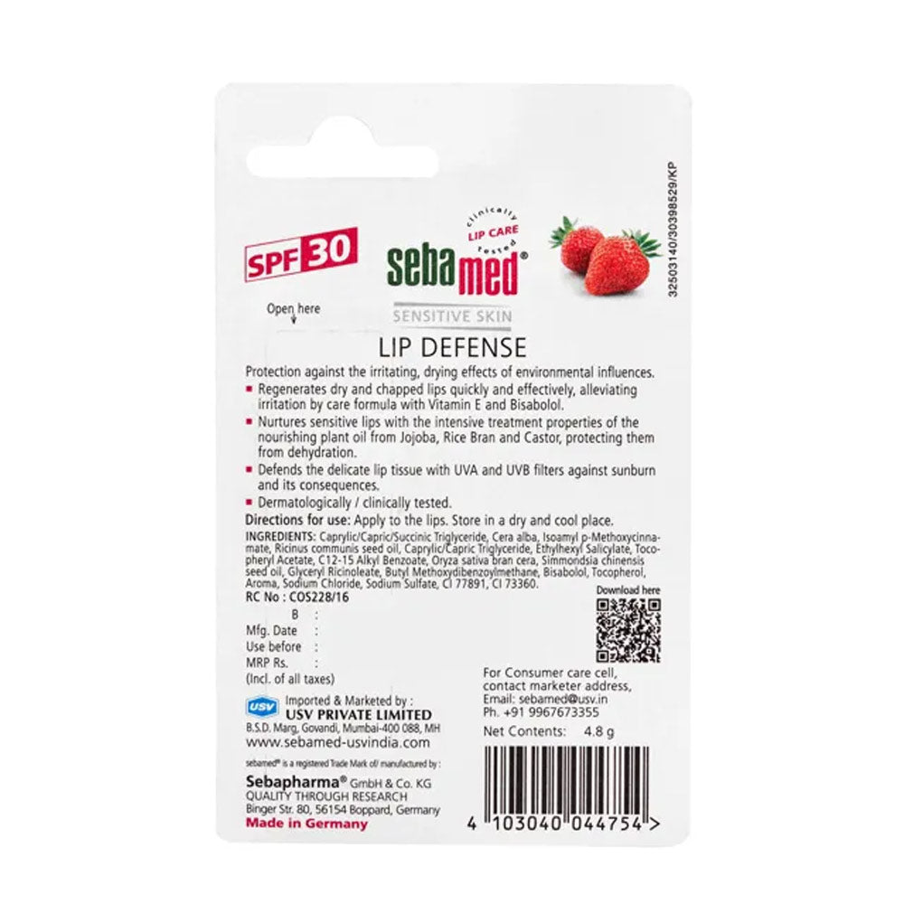 Sebamed Lip Defense is a lip balm designed to relieve dry, chapped lips and protect them from environmental factors like UV damage and wind.It contains vitamin E and jojoba oil to heal and soothe, along with SPF 30 for sun protection.It's formulated to be safe for sensitive skin, offering intensive treatment with nourishing plant oils.
