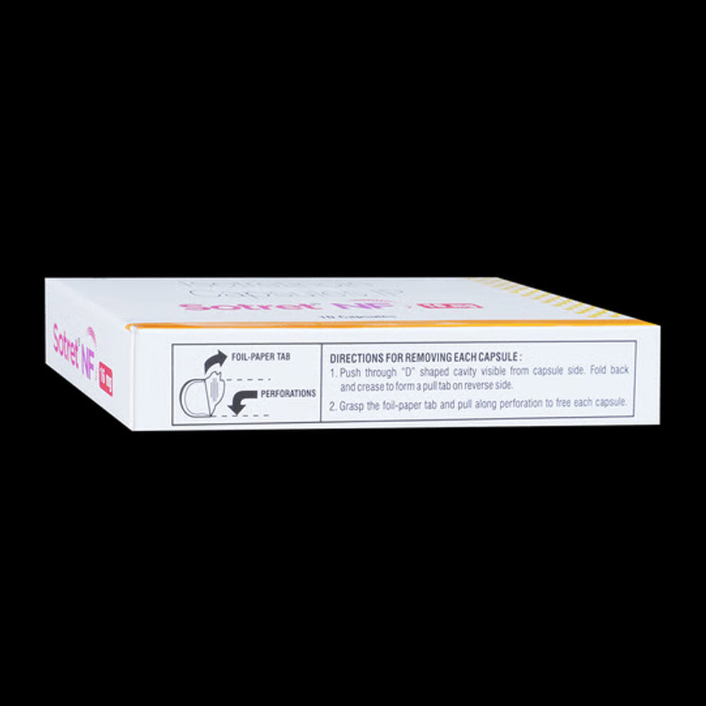 Sotret NF 16mg Capsule should be used in the dose and duration as advised by your doctor. Take it with food, preferably at the same time each day to avoid a missed dose. It may take several weeks for your symptoms to improve but keep taking the medicine regularly to get the most benefit. If you notice no improvement after a few weeks, see your doctor again.