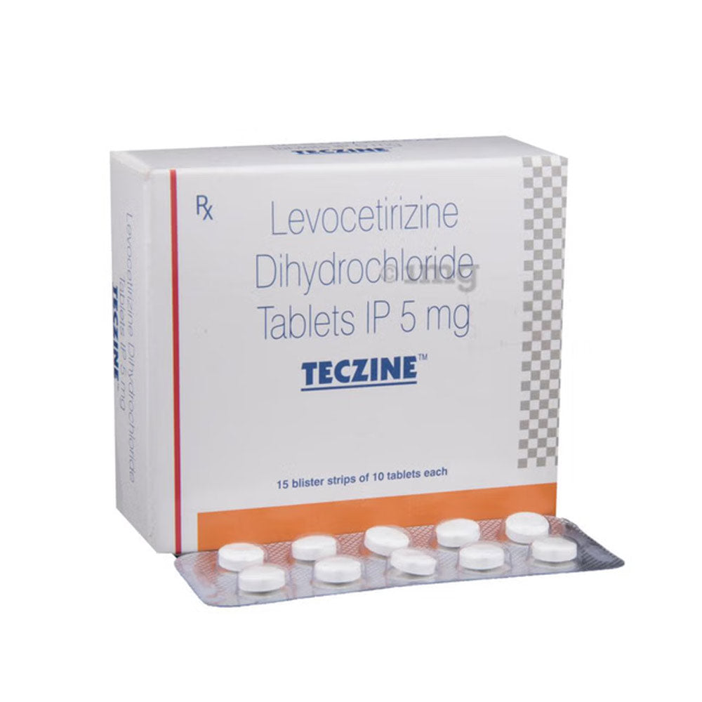 Teczine Tablet belongs to a group of medicines called antihistamines. It is used to treat various allergic conditions such as hay fever, conjunctivitis, some skin reactions such as eczema, hives, and reactions to bites and stings. It also relieves watery eyes, runny nose, sneezing, and itching.
